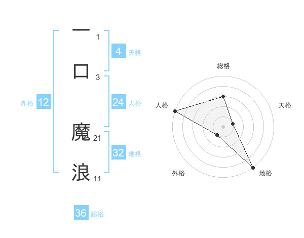 一口 魔浪さんを姓名の画数から五運を鑑定