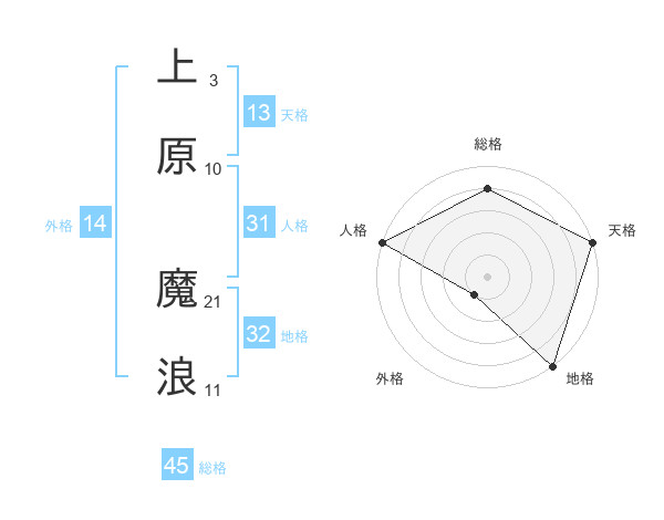 上原 魔浪さんを姓名の画数から五運を鑑定