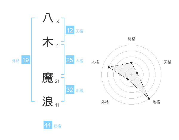 八木 魔浪さんの地格は32画の5点!