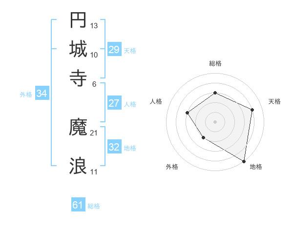 円城寺 魔浪さんを姓名の画数から五運を鑑定