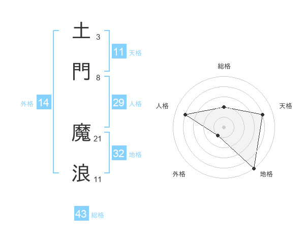 土門 魔浪さんの天格は11画の4点!