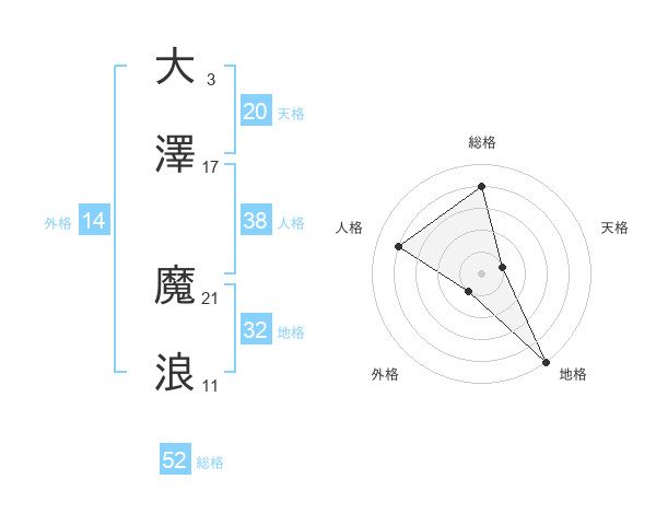 大澤 魔浪さんを姓名の画数から五運を鑑定