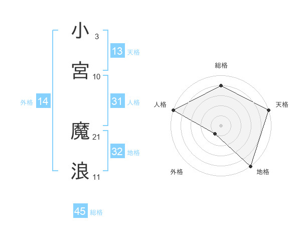 小宮 魔浪さんの天格は13画の5点!