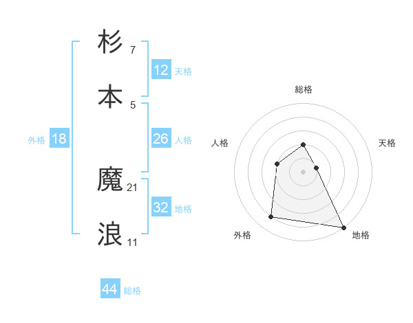 杉本 魔浪さんを姓名の画数から五運を鑑定