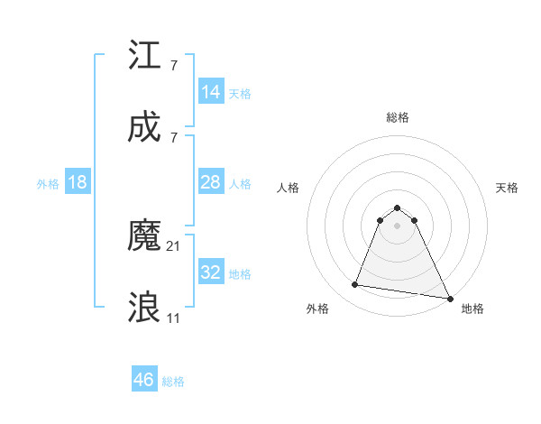 江成 魔浪さんの地格は32画の5点!