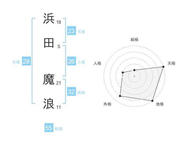 浜田 魔浪さんを姓名の画数から五運を鑑定