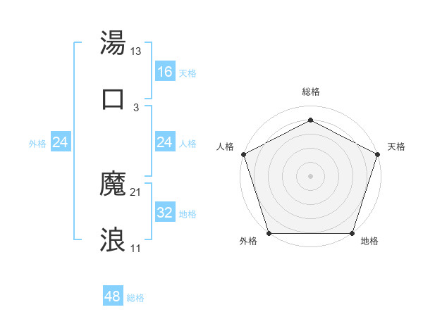 湯口 魔浪さんを姓名の画数から五運を鑑定