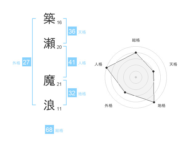 築瀬 魔浪さんの総格は68画の4点!