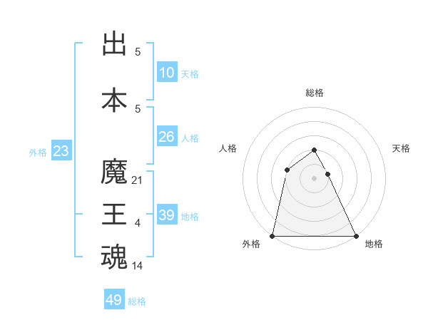 出本 魔王魂さんを姓名の画数から五運を鑑定