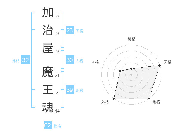 加治屋 魔王魂さんの外格は32画の5点!
