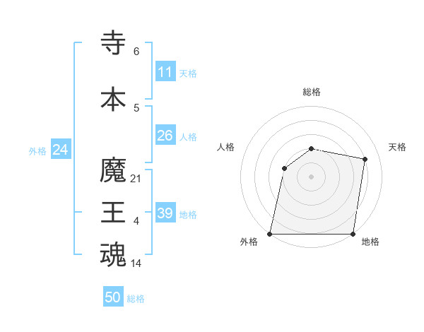 寺本 魔王魂さんの総格は50画の2点!