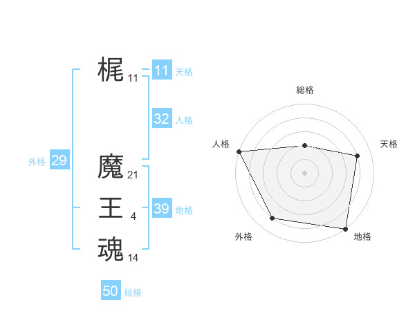 梶 魔王魂さんの外格は29画の4点!