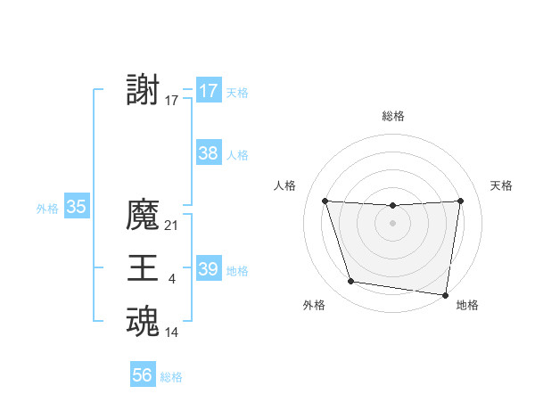 謝 魔王魂さんを姓名の画数から五運を鑑定