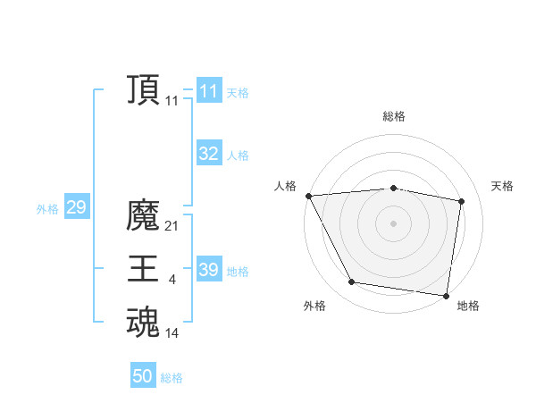 頂 魔王魂さんの外格は29画の4点!