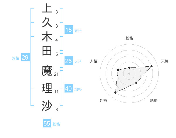 上久木田 魔理沙さんを姓名の画数から五運を鑑定