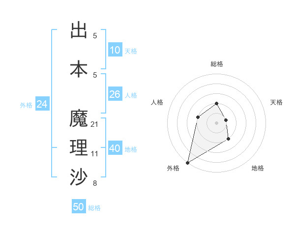 出本 魔理沙さんを姓名の画数から五運を鑑定