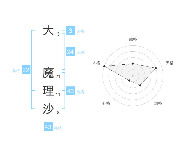 大 魔理沙さんの総格は43画の2点!