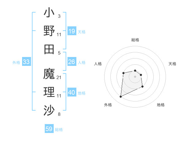 小野田 魔理沙さんを姓名の画数から五運を鑑定