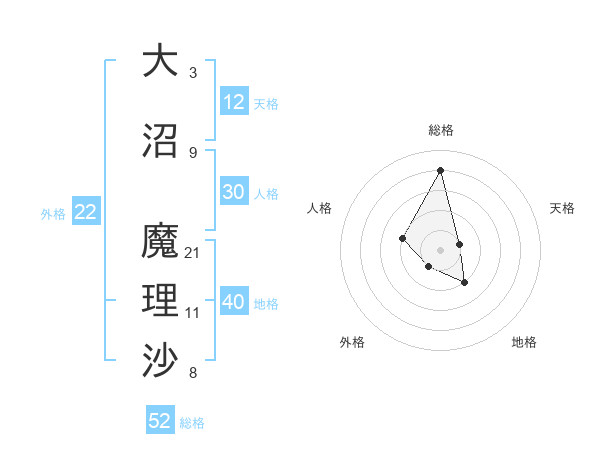 大沼 魔理沙さんを姓名の画数から五運を鑑定