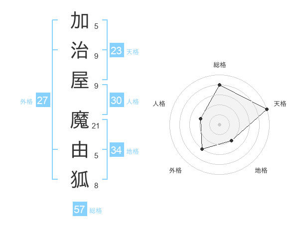 加治屋 魔由狐さんの総格は57画の4点!