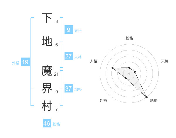 下地 魔界村さんの地格は37画の5点!