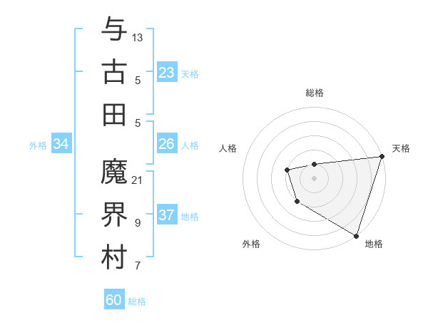 与古田 魔界村さんを姓名の画数から五運を鑑定