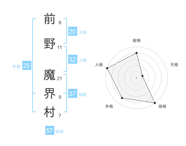 前野 魔界村さんの総格は57画の4点!