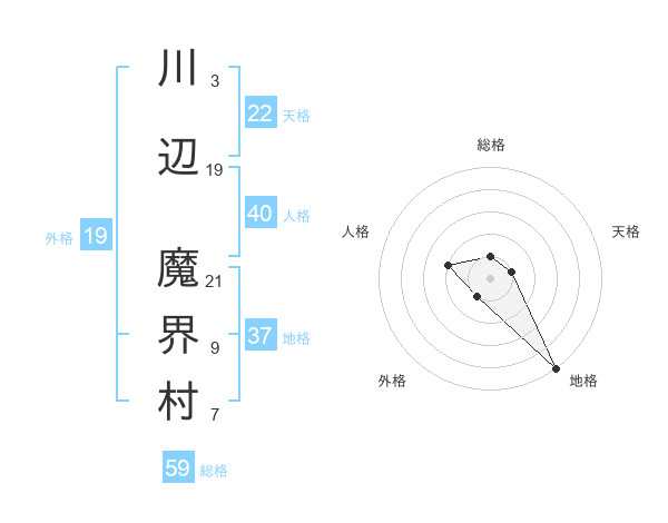 川辺 魔界村さんを姓名の画数から五運を鑑定