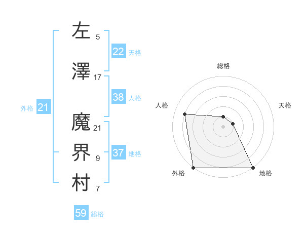 左澤 魔界村さんの外格は21画の5点!