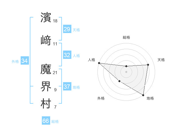 濱﨑 魔界村さんを姓名の画数から五運を鑑定