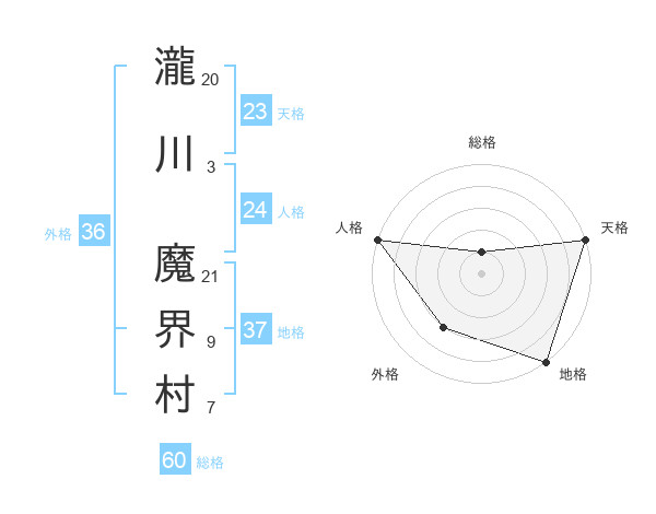 瀧川 魔界村さんを姓名の画数から五運を鑑定