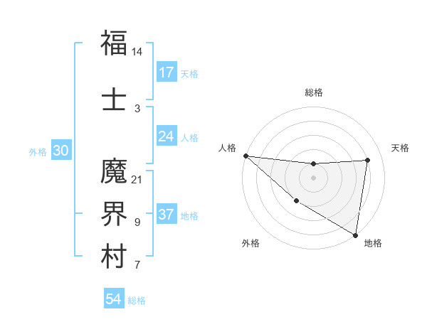 福士 魔界村さんの総格は54画の1点!