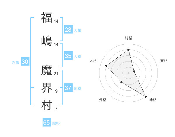 福嶋 魔界村さんを姓名の画数から五運を鑑定