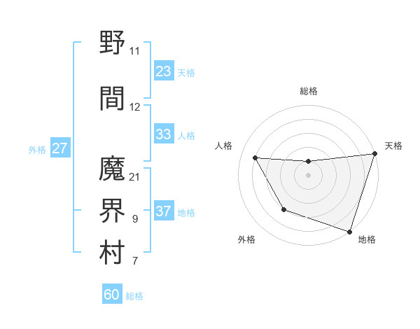 野間 魔界村さんの人格は33画の4点!