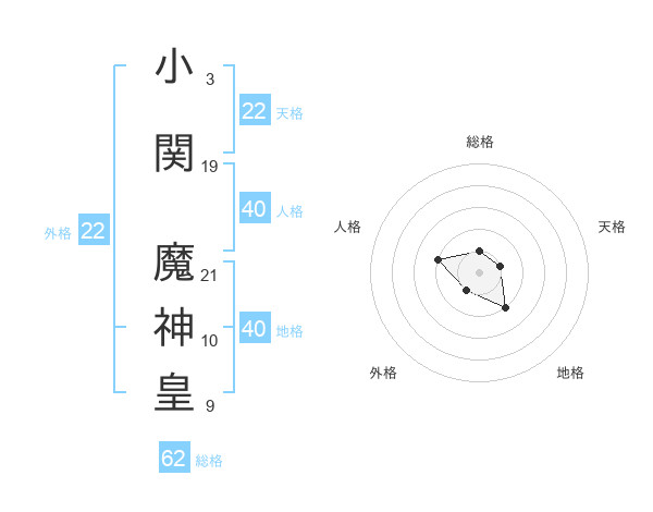 小関 魔神皇さんを姓名の画数から五運を鑑定