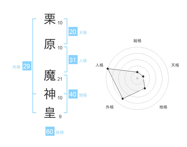 栗原 魔神皇さんの天格は20画の1点!