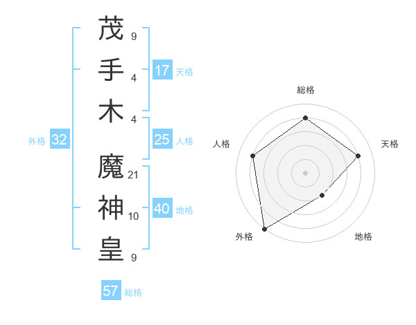 茂手木 魔神皇さんを姓名の画数から五運を鑑定