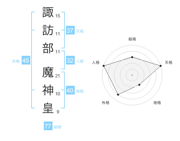 諏訪部 魔神皇さんを姓名の画数から五運を鑑定