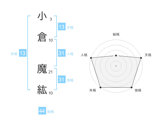 小倉 魔紘さんを姓名の画数から五運を鑑定
