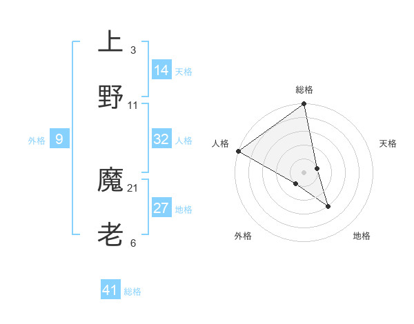 上野 魔老さんの総格は41画の5点!