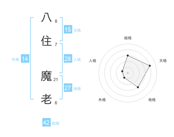 八住 魔老さんの総格は42画の3点!