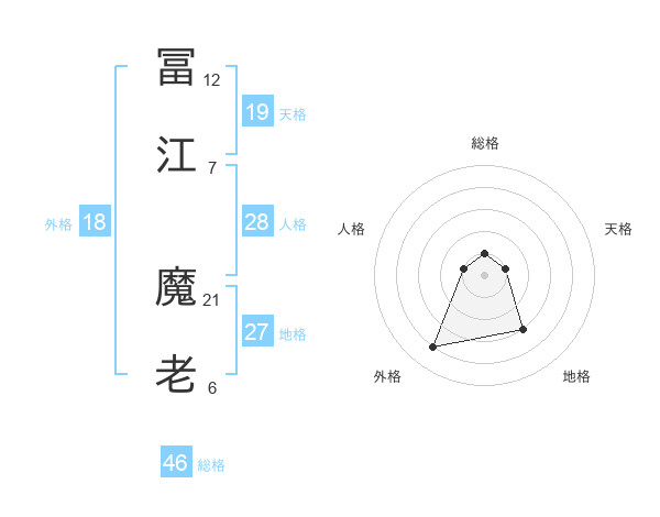 冨江 魔老さんを姓名の画数から五運を鑑定