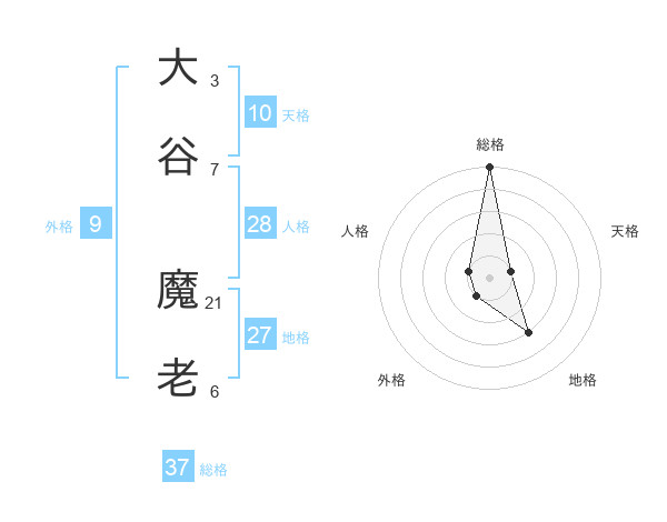 大谷 魔老さんの総格は37画の5点!
