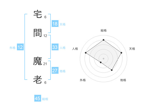 宅間 魔老さんを姓名の画数から五運を鑑定