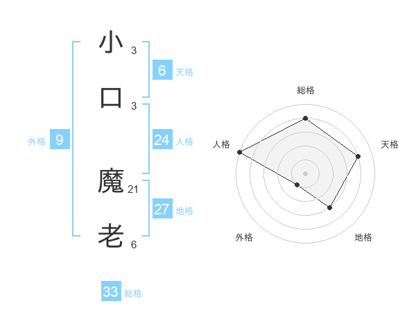 小口 魔老さんの総格は33画の4点!