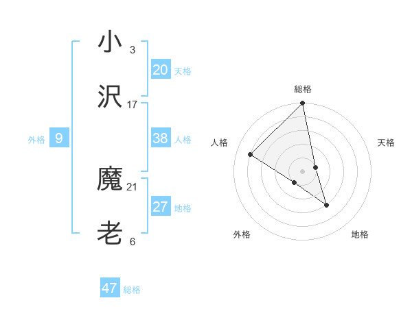 小沢 魔老さんの総格は47画の5点!