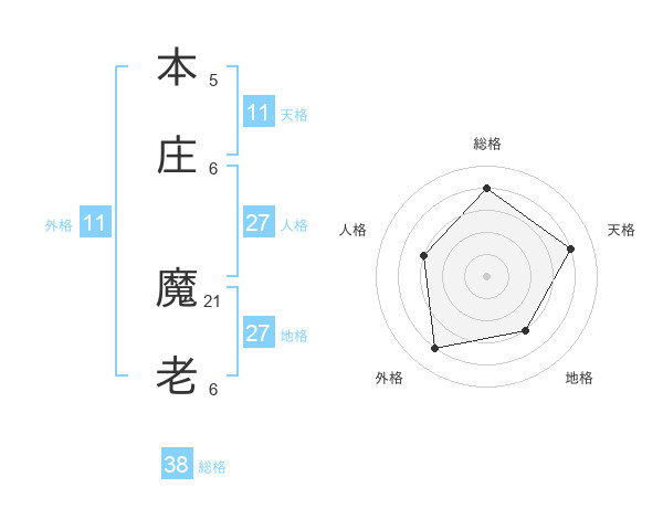 本庄 魔老さんの総格は38画の4点!