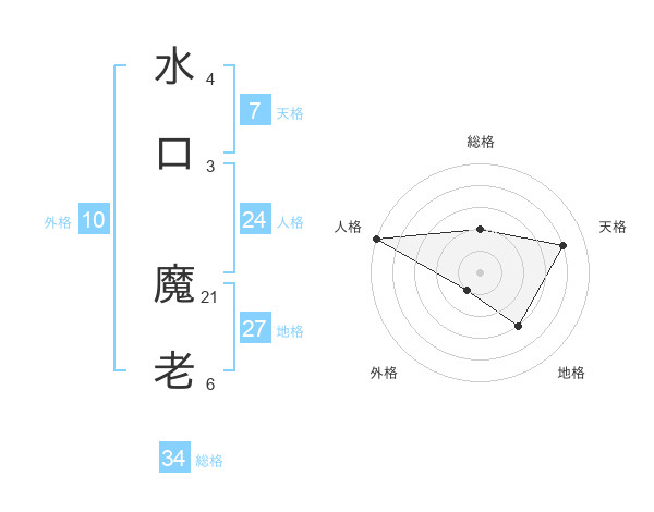 水口 魔老さんの総格は34画の2点!