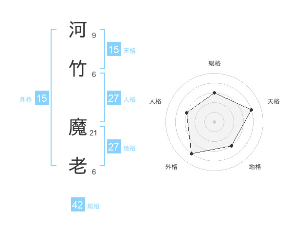 河竹 魔老さんを姓名の画数から五運を鑑定