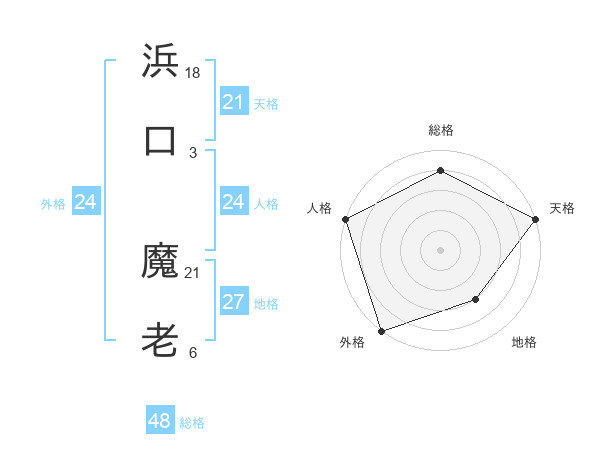 浜口 魔老さんの外格は24画の5点!